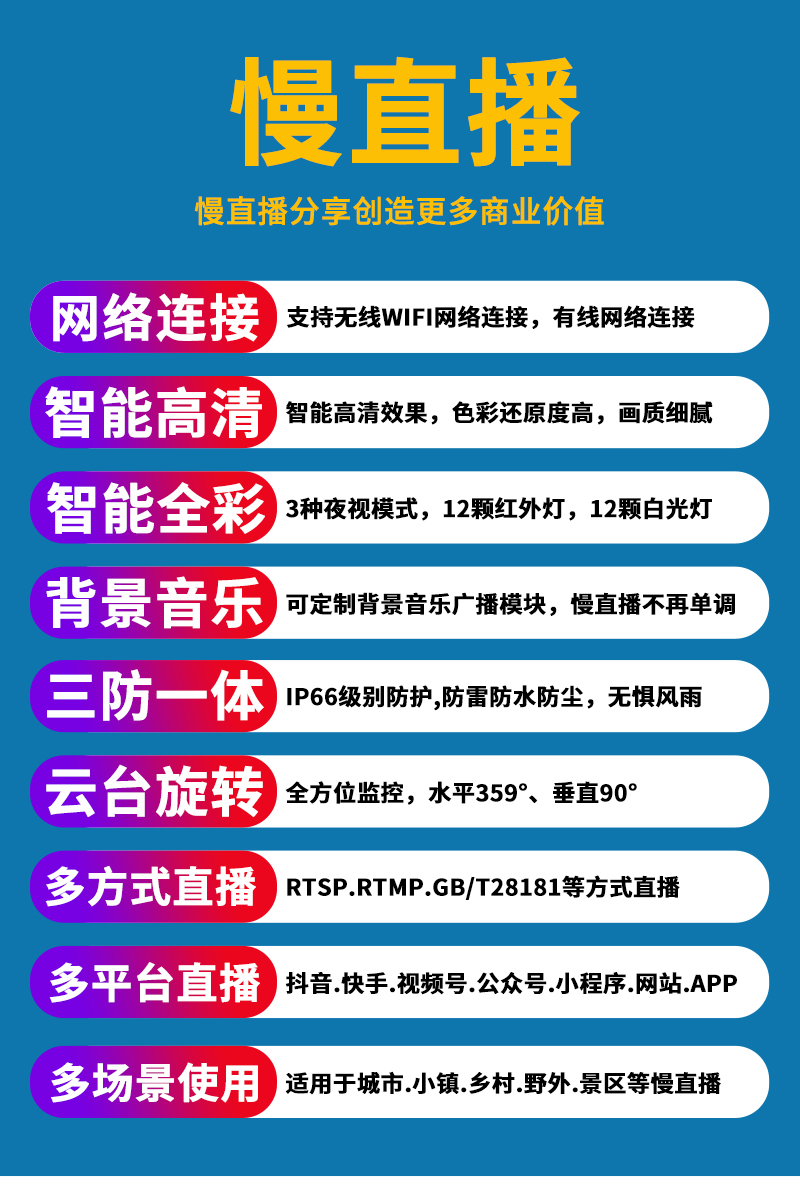5、RTMP推流直播高清摄像头;可生成慢直播二维码,只需扫码即可观看慢直播;