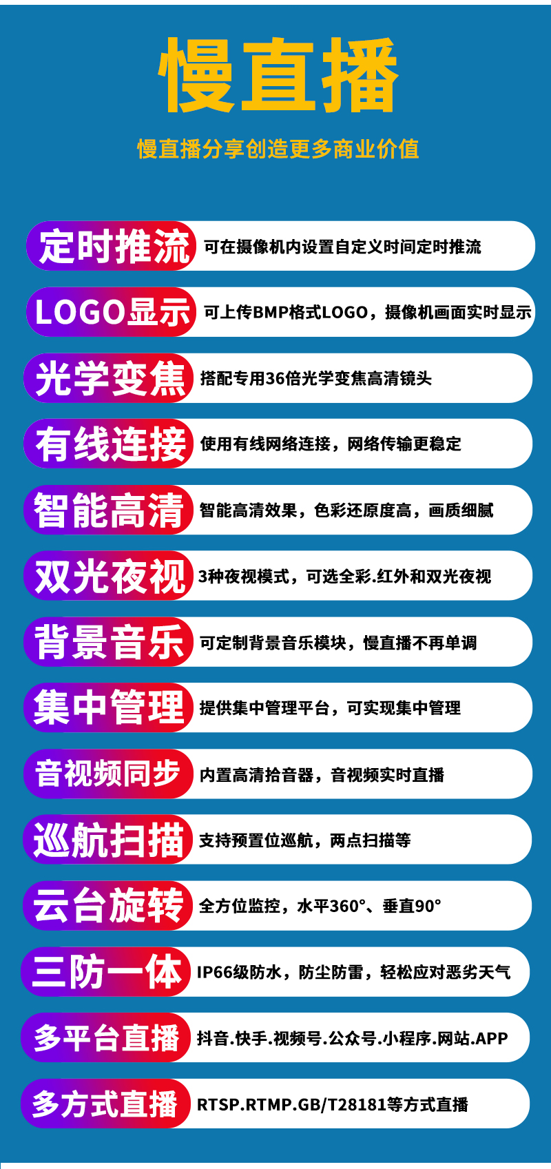 5、RTMP推流直播高清摄像头;可生成慢直播二维码,只需扫码即可观看慢直播;