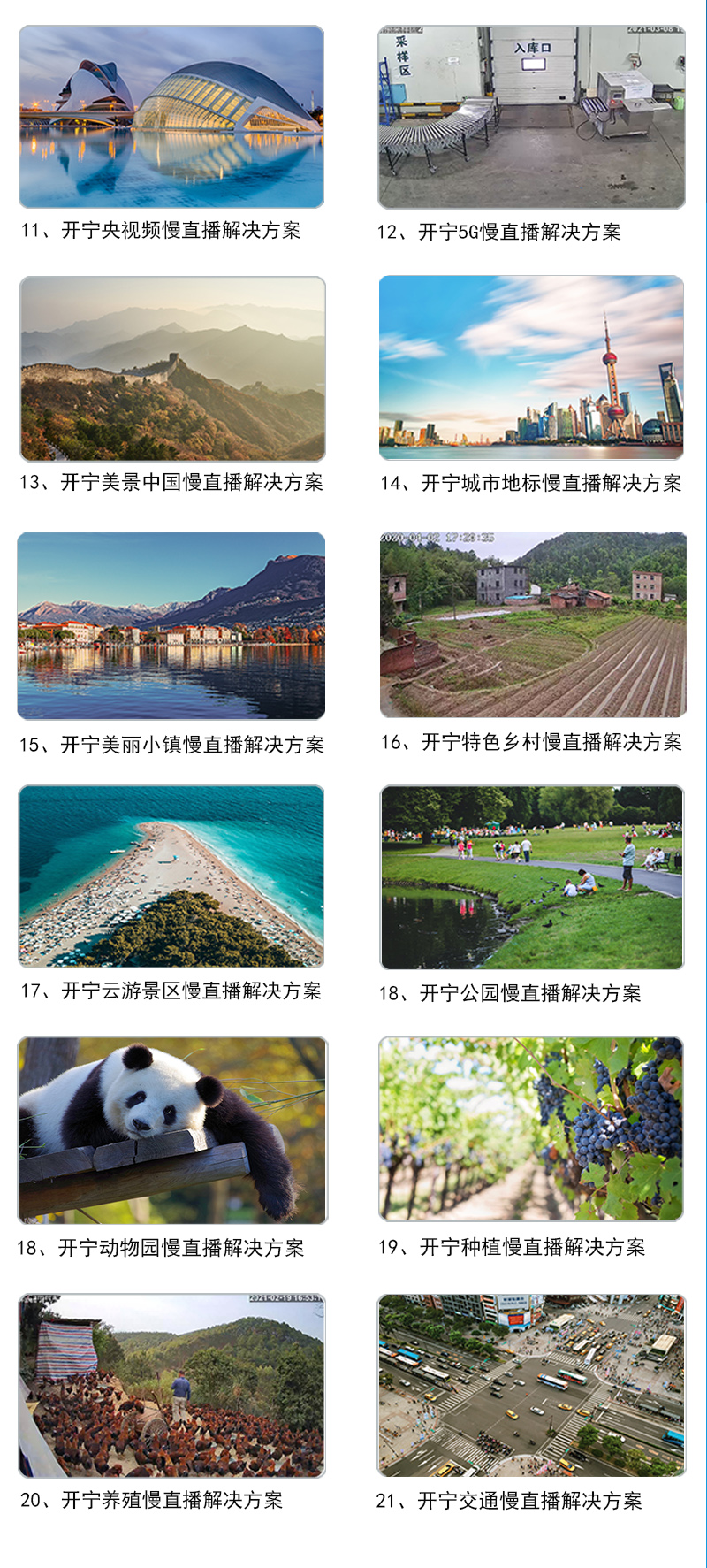 5、美景中国.智慧景区.城市慢直播.5G慢直播.融媒体慢直播.央视频慢直播.户外慢直播等慢直播;